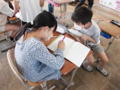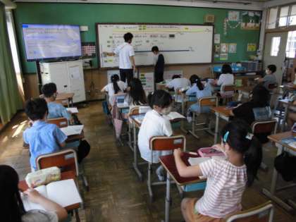 2mで96円の場合,96÷2で48円と求めることができます。今日の算数では,もとの値段÷長さで1m分の値段を求められることを使って,2.4mで96円の時の値段を考えました。図を使って自分の考えをノートに書いたものを友達に説明しながら意見を交流していました。