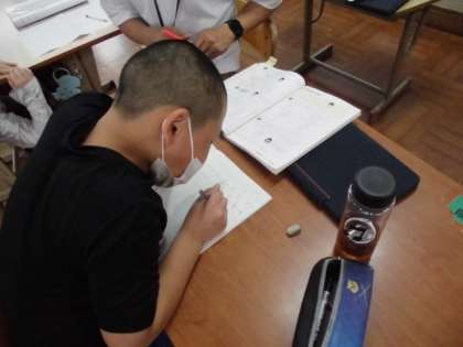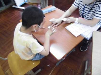 算数の時間には,計算や体積,九九など自分にあった学習を進めていきました。教科書で一緒に学習してから練習問題に取り組んだりブロックの絵を見ながら数の計算をしたりしていました。