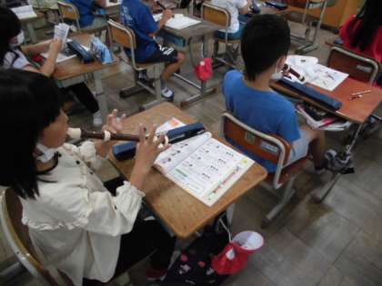 音楽の時間には,リコーダーで「シ」の音の吹き方を学習しました。人差し指と親指できちんと穴をふさぐことやタンギングすることなど気を付けることをたくさん知りました。