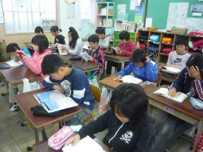 梅津北小学校では11月4日(金)〜11月18日(金)までをもみじ読書週間とし,朝学習などで読書に親しむ時間をたくさん取り入れています。子どもたちは,毎朝の15分間読書を楽しんだり,係活動で読み聞かせをしたりして自ら意欲的に読書に取り組むことが出来ています。少しでも多くの本を読み自分の考えや知恵を深めていってほしいと思います。