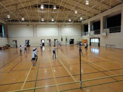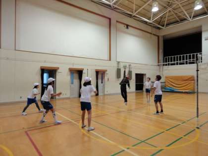 最初は全然ラリーが続かなかったのですが,練習を進めるうちに声かけが増えたり,ポジションを考えて動けるようになってきました。次からはリーグ戦をします。