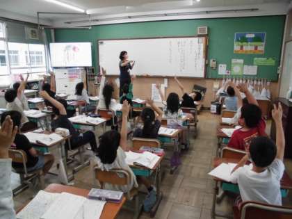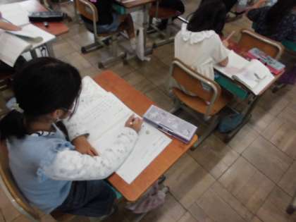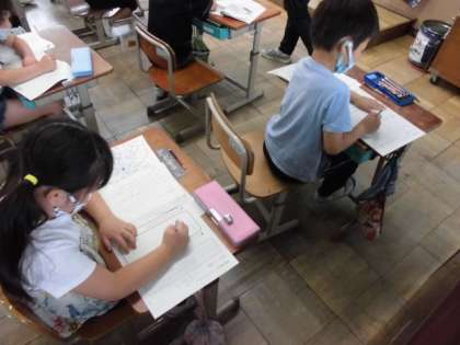 国語の時間にみんなで「スイミー」を読むのも2回目。順番に一文ずつ読んでいきました。何度も読んでいるうちにだんだん上手になっていきます。今日は,読み終えた後に登場人物について考えました。スイミーをはじめ,どんな生き物が出てきたのかノートに書いていました。