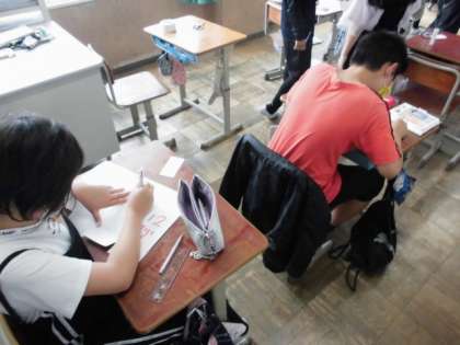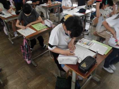 来週には,山の家宿泊学習があります。今日は,係ごとに分かれて準備を進めました。班長はめあてを確認してだブレットでメンバーにメッセージを送りました。食事係はテーブルが分かりやすいように班の看板を作りました。保健係は,みんなが健康に過ごせるようにポスターを書きました。当日までみんなで健康管理をして,元気に出発したいです。