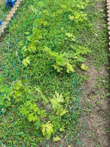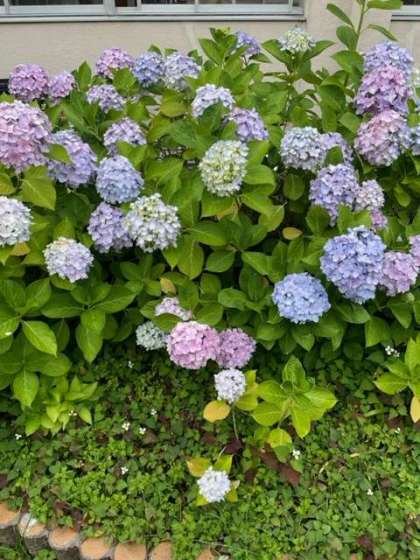 学校の紫陽花が見頃を迎えました。サツマイモやツルレイシもすくすく育っています。