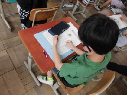 今日の算数では,はじめにケーキが20こあったけど,くばったので5こ残った時,いくつ配ったのかテープ図を使って考えるようにしました。問題文から分かっていることを確認した後,テープの図を描きました。その後,問題文にあった数字などを書き込むことで求める部分がどこなのか分かりやすくなりました。