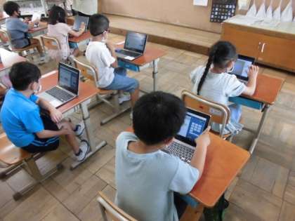 1人1台のタブレットを様々な学習場面で活用するようになりました。授業中だけでなく,課題が早く終わったりした時にもタブレットを出して,ドリルに取り組んでいます。ポイントがたまると子ども達は大喜びしています。