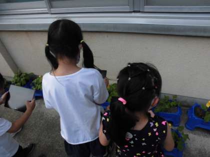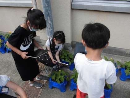 タブレットにはいろんな機能があります。今日は,ロイロノートを使ってアサガオの様子を写真に撮りました。ぼやけてしまってなかなかくっきりとしてくれなかったのですが,じっと待ってクリアな画面になった瞬間に撮影していました。