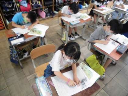 国語では,「スイミー」という教材を使って学習しています。今日は,スイミーの言ったことやしたことを中心に読み取るようにしました。「スイミーは考えた。いろいろ考えた。うんと考えた。」というところでは,どんな風に考えていたのか,様子を想像して音読していました。