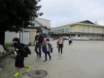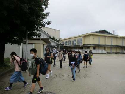 出発式を終えた5年生は山の家に向けて出発しました。多くの保護者の皆様に見送りに来ていただき,ありがとうございました。
