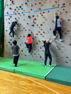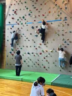 朝まで降った雨の影響で冒険の森に行けなくなりました。そこで、プレイホールに行ってボルダリングをすることになりました。3点支持を意識して登りました。