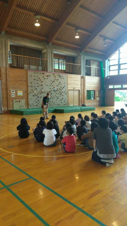 みんなつかむところや足をひっかけるところをしっかり確認しながら,壁を上っていきます。みんな真剣に,楽しく活動しています。