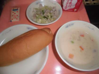 「『ハムサンド(具)』は,野菜がシャキシャキしていて,とっても美味しかったです。『チャウダー』は,にんじんが甘くておいしいかったです。」と,感想をくれました。