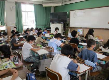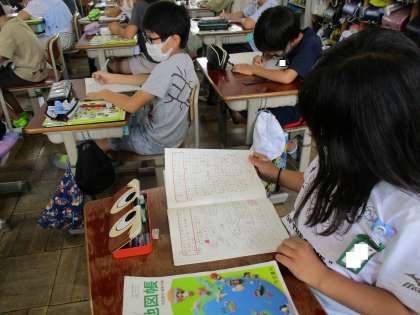 社会科ではごみの学習をしています。自分たちの学校や家庭からたくさんのごみが出ていることを学んだ4年生は,その後のごみがどこに行くのかを調べていきます。調べる前に視点を明らかにするためにも,一人一人予想をしました。前の時間までのノートを見たり,友達と話したりしながら,自分なりの予想をノートに書いていました。