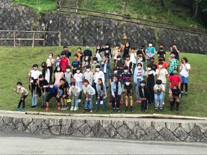写真撮影の前に,敷地内で鹿を見ました。大自然の中にいることを実感する一コマでした。