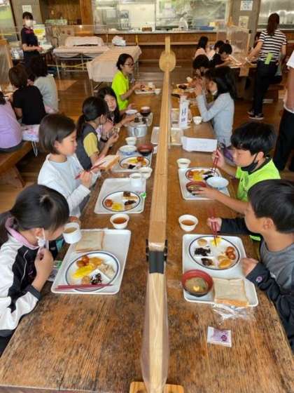 今日の朝ごはんは、ごはんと食パンから選びます。それによって、みそ汁かスープとなるようです。