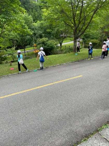 ディスクがうまく飛んでくれなくても、班で声をかけ合ってがんばっています。
