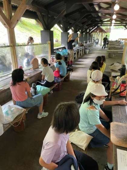 野外炊事の説明を山の家の方がしてくださいました。材料の切り方や鍋の置き方など真剣に聞いています。