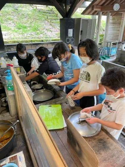 美味しくできたカレーを食べた後は、みんなで後片付けです。
