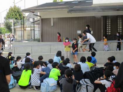 5年生は予定よりも早く16時30分ごろに学校へ到着しました。思いっきり活動を楽しんだせいか少し疲れた様子でしたが,しっかりとした態度で解散式を行いました。頑張れたこと,課題だったことを整理して,これからの学校生活に生かしてほしいと思います。