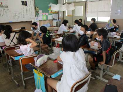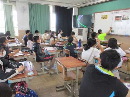 今日はパラリンピックに三大会連続で出場した谷選手の生き方から,誇りある生き方について考えました。足を失ったことであきらめず,大好きなスポーツに挑み,さらに多くの人に良さを広めている姿に,子どもたちはとても驚いていました。お互いに意見を交流する中で,自分の生き方についても考えていました。