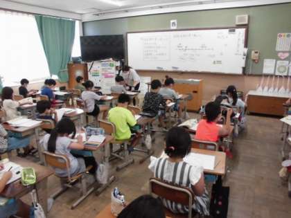 今日の算数では,9時50分に図書館について10時25分に図書館を出発した時,どのくらい図書館にいたのか時間直線を使って考えました。10時を1つの基準として,10時まで何分で10時から何分なのか分けて考え,最後に合わせるようにしました。