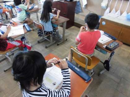 今日の音楽では,リコーダーに取り組みました。「きれいなソラシ」という曲では,ソ・ラ・シの3つの音が出てきます。みんなで指づかいを確認したあと,少しずつ演奏してみました。穴をしっかりふさぐように心がけていました。