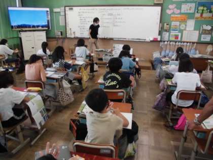 今日の社会では,なぜ庄内平野で米づくりがさかんなのか調べました。庄内平野の田んぼの写真を見ると,田んぼがとても広くどれも同じような形をしていることに気づきました。また,周りには山や川が近いことから水が豊富にあると考えていました。