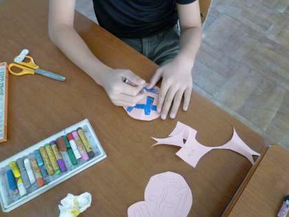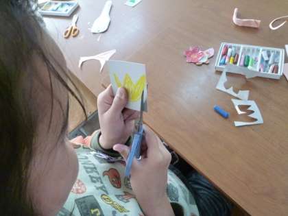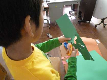 色を塗る係,切る係,はる係・・・役割を決めてがんばりました。