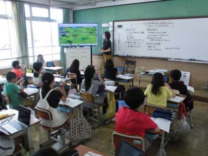 山形県の庄内平野では米づくりが盛んであることが分かりました。今日は,どのくらい作っているのか調べました。1つの水田が30m×100mということや米を作りやすい気候であることからたくさん作っているだろうと予想はできます。グラフを見てみると,想像以上の多さでイメージすることが難しいようでした。