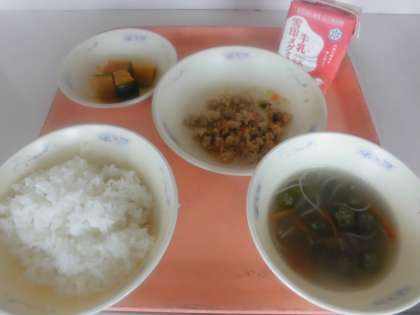 「『とりそぼろ丼(具)』は,ごはんにのせて食べたら,とってもおいしかったです。ありがとうございました。『かぼちゃの煮つけ』は,かぼちゃがやわらかくて,味がしみていて,とってもおいしかったです。『七夕そうめん』は,出しの味がして,そうめんがとってもおいしかったです。」と,感想をくれました。