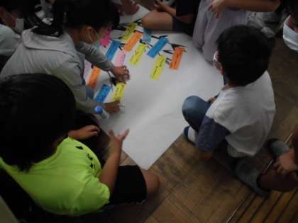 明日は七夕の日なので,教室に短冊を飾りました。それぞれの願い事を書いた短冊をバランスよく貼るようにみんなで工夫していました。