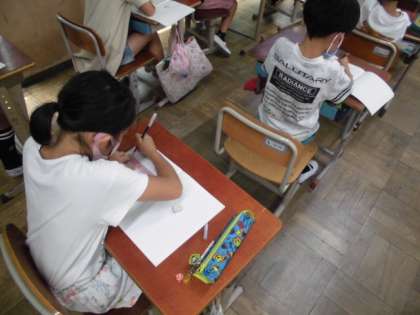 教科書の資料を見るとたくさんの用紙がありました。いくつか束になっているので数えてみると全部で「三万四千四百十三枚」ありました。今日は,この一万をこえる数について学習しました。34413と表記することや位ごとにいくつあるのか数えることで数の構成について考えていました。