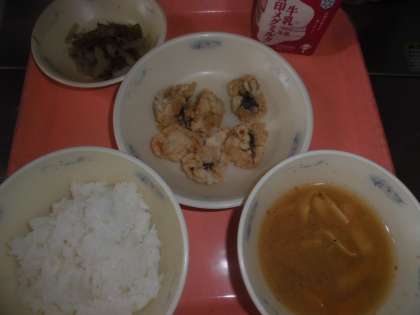 「『はものこはくあげ』は,外はカリカリで,身はふっくらしていて,とってもおいしかったです。『伏見とうがらしのおかか煮』は,伏見とうがらしは,少し苦みがあったけど,こんにゃく・ちくわと一緒に食べたらおいしかったです。」と,感想をくれました。