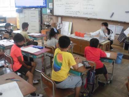 普段,見かけるバケツにはどのくらい水が入るのでしょうか。どのくらい?と聞かれた時,どのように答えればいいのでしょうか。今日の算数では,バケツに入っている水のかさについて学習しました。長さのように共通する単位があると便利なので,「1L」という単位を知りました。バケツの水を1Lますに入れていくと,5はい分あったので,5Lということが分かりました。