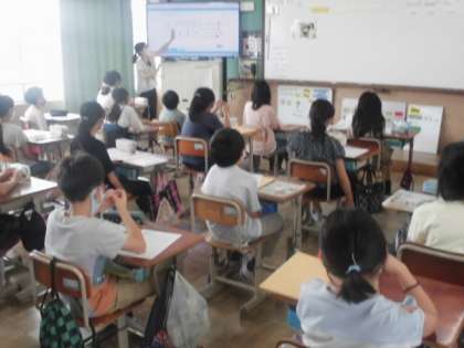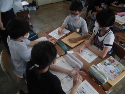 今日の外国語では,いろんなお手伝いの言い方を知り,「いつも」や「時々」などどのくらいしているのか伝える言い方を学習しました。食事の用意や後片付けなどをいつもしている場合は「always」,時々している場合は「sometime」をつけて表現することが分かりました。その後,ゲームを通して何度も発音することで慣れ親しんでいました。