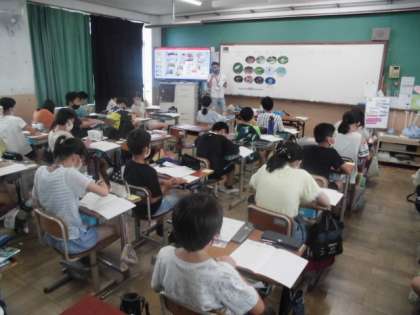 今日の理科の時間では,生き物どうしが食べ物を通してどのようにつながっているのか調べました。植物を食べる生き物もいれば,動物を食べる生き物もいます。自分の知っている生き物について,どんなつながりがあるのか考えていました。