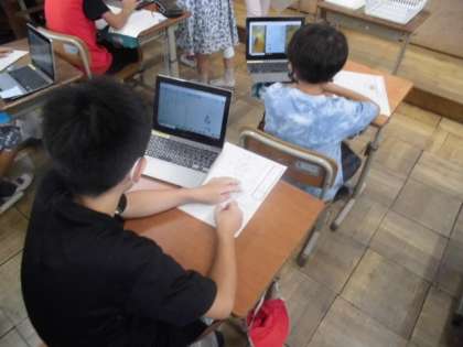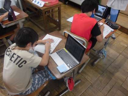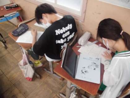 これまで学習してきたことをもとに有栖川のことを中心に新聞づくりをしました。自分が調べたことや聞いたことを新聞の形式に合うように記事を書いていました。マス目があるのでバランスよく書きやすそうでした。