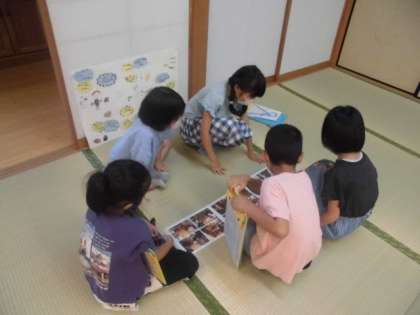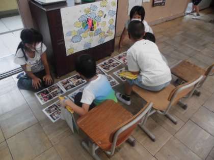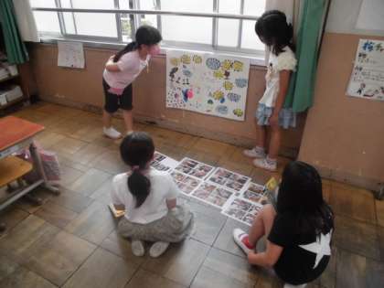自分たちの町には,いろんなお店や田んぼ,畑などがあります。先日は,生活科の時間に探検に行って見つけたお店にインタビューしに行きました。お店の様子や働く人の思いなどたくさんのことを教えてもらいました。自分たちが分かったことをまとめたものが出来上がったので,今日はお互いに紹介し合いました。