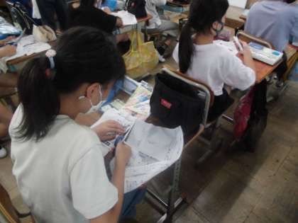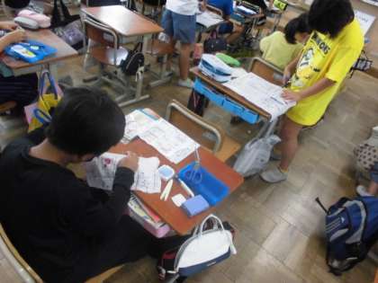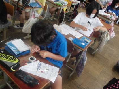 今日の家庭科では,練習布を使って玉結び・玉止めの練習をしました。針の穴が小さくて,なかなか糸が通らなかったり,せっかく通した糸がするりと抜けてしまったりとなかなか思った通りに進みません。それでも粘り強く取り組んでいました。