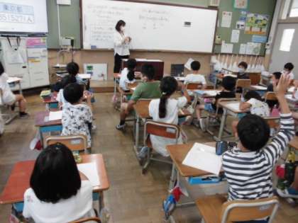 二千六十三万四千八百五十を数字で表すと「20634850」となります。空いている位には「0」を書くことで表記できます。今日の算数では,さらに大きな数について考えました。千万は百万の何倍か?を考える時,百が10こ集まれば千なので,10倍と求めました。では,千万を10倍した数は?を考える時は,やはり千万を10こ集めます。すると,とても大きな数になりました。