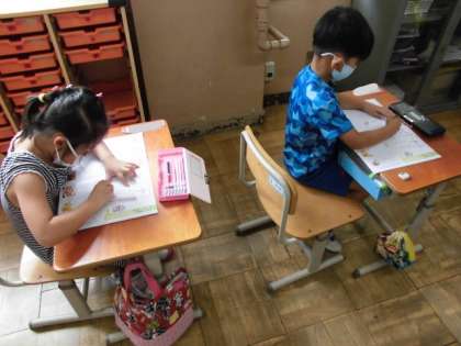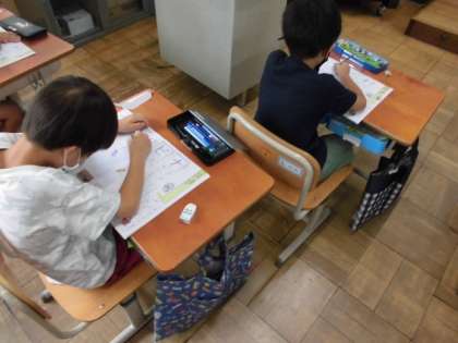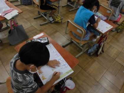 国語の時間には,カタカナの学習をしました。今日は「ナ・ピ・ア・ハ・ウ」です。ピーナッツやアイロン,ハイキングなど普段の生活で使われている言葉を紹介しながら練習しました。お手本を見ながら丁寧に書くようにしていました。