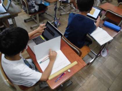 国語の時間には、自分が興味のある仕事についてタブレットを使って調べました。自分たちの生活にはいろんなお仕事の方が携わっています。仕事はたくさんあるので、自分が知っている仕事ややってみたい仕事から調べるようにしました。すし職人や野球選手、漫画家など調べることでより詳しくなっていました。