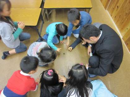 「地球にe(え)〜co(えこ)」では右京区ECOまちステーションの方をお迎えしてゲームや遊びをとおして身近なエコについて考えています。
