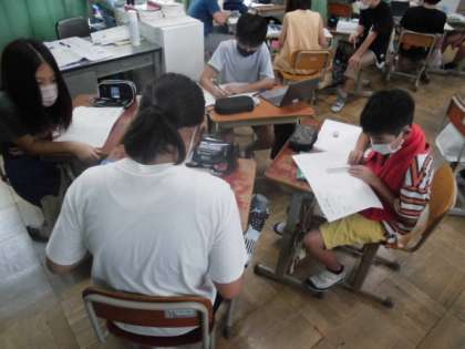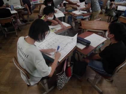 いろんな人がソフトボール投げをして、その記録をもとにチーム分けをしました。今日の算数では、その分け方について、公平か不公平かグループで相談しました。投げた記録の平均値や最大地、最小値さらには散らばり具合から考えるといろんな意見が出ていました。