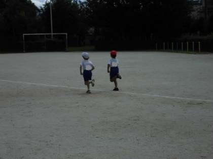 今日の体育では、50m走のタイムを計りました。春先よりも夏休みを経て、体力が向上している場合も十分考えられます。そこで、今の走力がどれぐらいか計ることにしました。どの子も最後まで一生懸命走る姿が見られました。
