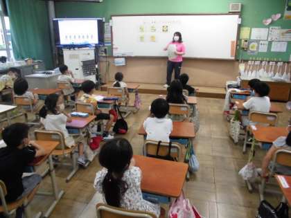 今日は外国語の時間があり、今の自分の状態を英語で伝えるための言い方を学習しました。「元気です」や「おなかが減っている」といった様子を「I’m fine」「I’m hungry」と先生と一緒に発声しながら慣れるようにしました。