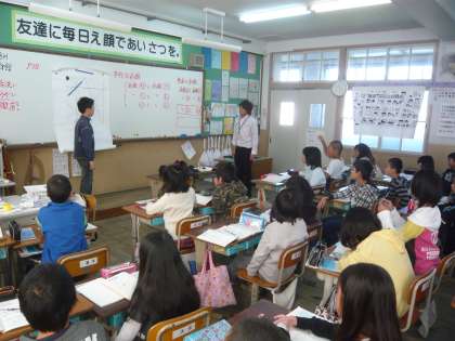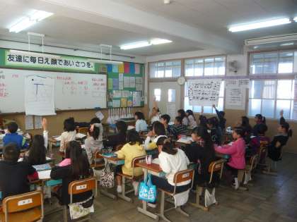 算数科では,垂直と平行の学習を行っています。子どもたちは垂直と平行の意味を説明したり,三角定規を2枚使ってどのように描くかを考えたりして意欲的に学習に取り組むことが出来ました。