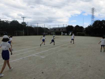 体育の時間には100m走のタイムを計りました。久しぶりに運動場を走るので、少し緊張気味でしたが、最後までがんばっている様子がたくさん見られました。スポーツフェスティバルでも全力で走る姿を見ていただきたいです。