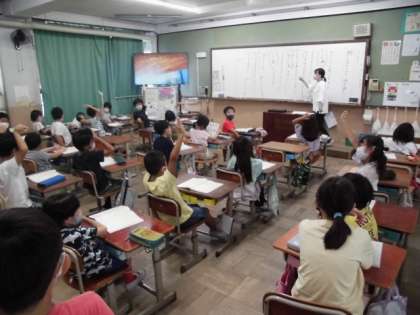詩には「連」というまとまりがあります。今日は、その連を意識して「わたしと小鳥とすずと」「夕日がせなかをおしてくれる」という2つの詩を読んでみました。どちらか1つ選んでと言われると、どちらにも良さがあり、悩んでいる子もいました。