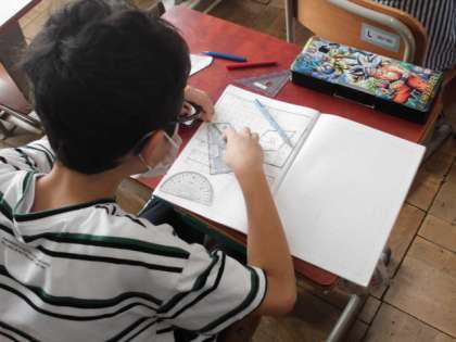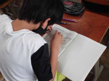 算数では図形について学習しています。四角形でも長方形や正方形、平行四辺形などがあります。今日は、新しい四角形について学習しました。4つの角度を測ってみると向かい合う角が同じ大きさでした。辺の長さを調べてみると、4つとも同じ長さでした。正方形でもなく平行四辺形でもないこの形を「ひし形」と呼ぶことを知りました。